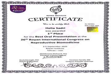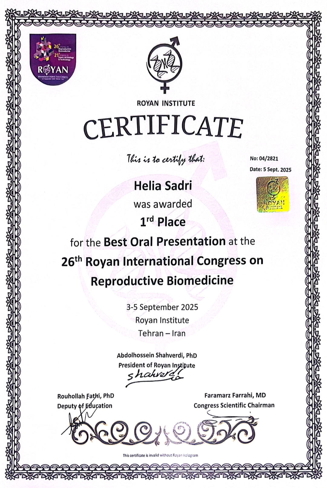 هلیا صدری، دانشجوی ترم سوم پزشکی دانشگاه علوم پزشکی ارومیه، با ارائه موفقیت‌آمیز پژوهش خود در حوزه ناباروری مردان، عنوان سخنران برتر بیست و ششمین کنگره بین‌المللی رویان را کسب کرد.
